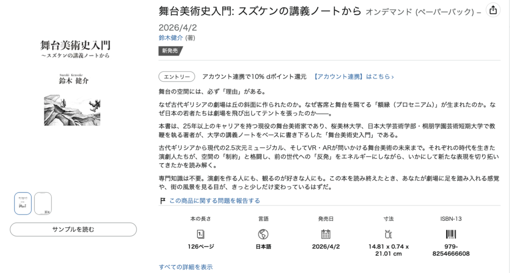 舞台美術史入門: スズケンの講義ノートから オンデマンド (ペーパーバック) – 2026/4/2